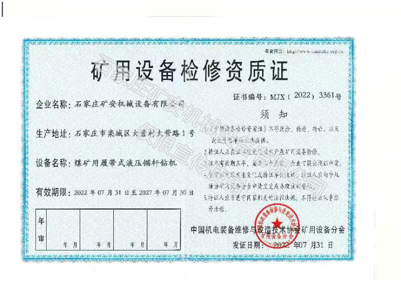 石家莊礦安機械設(shè)備有限公司成立于2011年3月,公司位于風(fēng)景優(yōu)美、科技發(fā)達、交通便利的石家莊市欒城區(qū),是一家專注生產(chǎn)煤礦井下支護機具(錨桿鉆機)和安全鉆機(防突,架柱等)及氣動隔膜泵等礦用機械設(shè)備的********,是國內(nèi)煤礦機械裝備的生產(chǎn)商和服務(wù)商,根據(jù)用戶需求提供井下適用的鉆機施工解決方案。公司致力于打造研發(fā)、制造、銷售、服務(wù)為一體的現(xiàn)代化企業(yè),全心全意為煤礦生產(chǎn)保駕護航。 ? 公司建有裝配車間、機加車間和調(diào)試車間,擁有嚴格的質(zhì)量控制體系、先進的產(chǎn)品開發(fā)系統(tǒng)、完善的試驗檢測設(shè)施、良好的售后服務(wù)保障。先后與中煤科工集團沈陽研究院、西安研究院、太原理工大學(xué)、燕山大學(xué)等知名院校建立了緊密的合作關(guān)系。 ? 公司產(chǎn)品主要銷往山西、陜西、山東、內(nèi)蒙古、黑龍江、云南、貴州等七十多個礦區(qū)和地方煤礦,擁有一支成熟的售后技術(shù)團隊,并且和中煤集團、華電煤業(yè)集團、華潤煤業(yè)集團、潞安集團、山西焦煤、淮北礦業(yè)等國內(nèi)知名企業(yè)達成長期合作關(guān)系。 ? 公司始終秉持“讓煤礦生產(chǎn)更安全”的發(fā)展使命,力求誠信與創(chuàng)新,追求卓越與完美,深知“實實在在、心無旁騖做實業(yè)”,這才是本分!石家莊礦安機械設(shè)備有限公司愿與您攜手共進,共同發(fā)展!為客戶創(chuàng)造價值,提供優(yōu)質(zhì)的產(chǎn)品和*佳的服務(wù)是我們永無止境的理念!